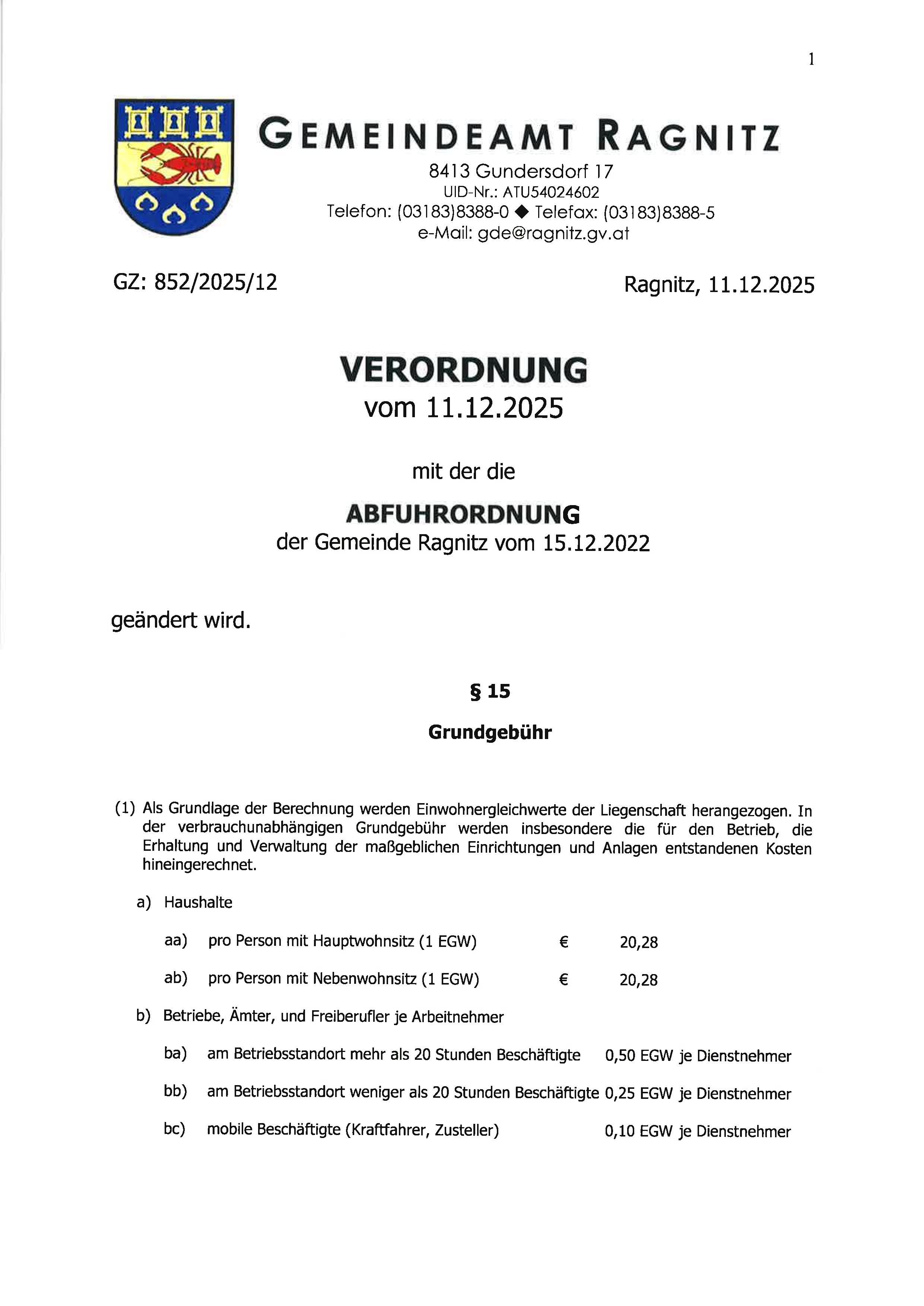 KM Verordnung Abfuhrordnung 2026