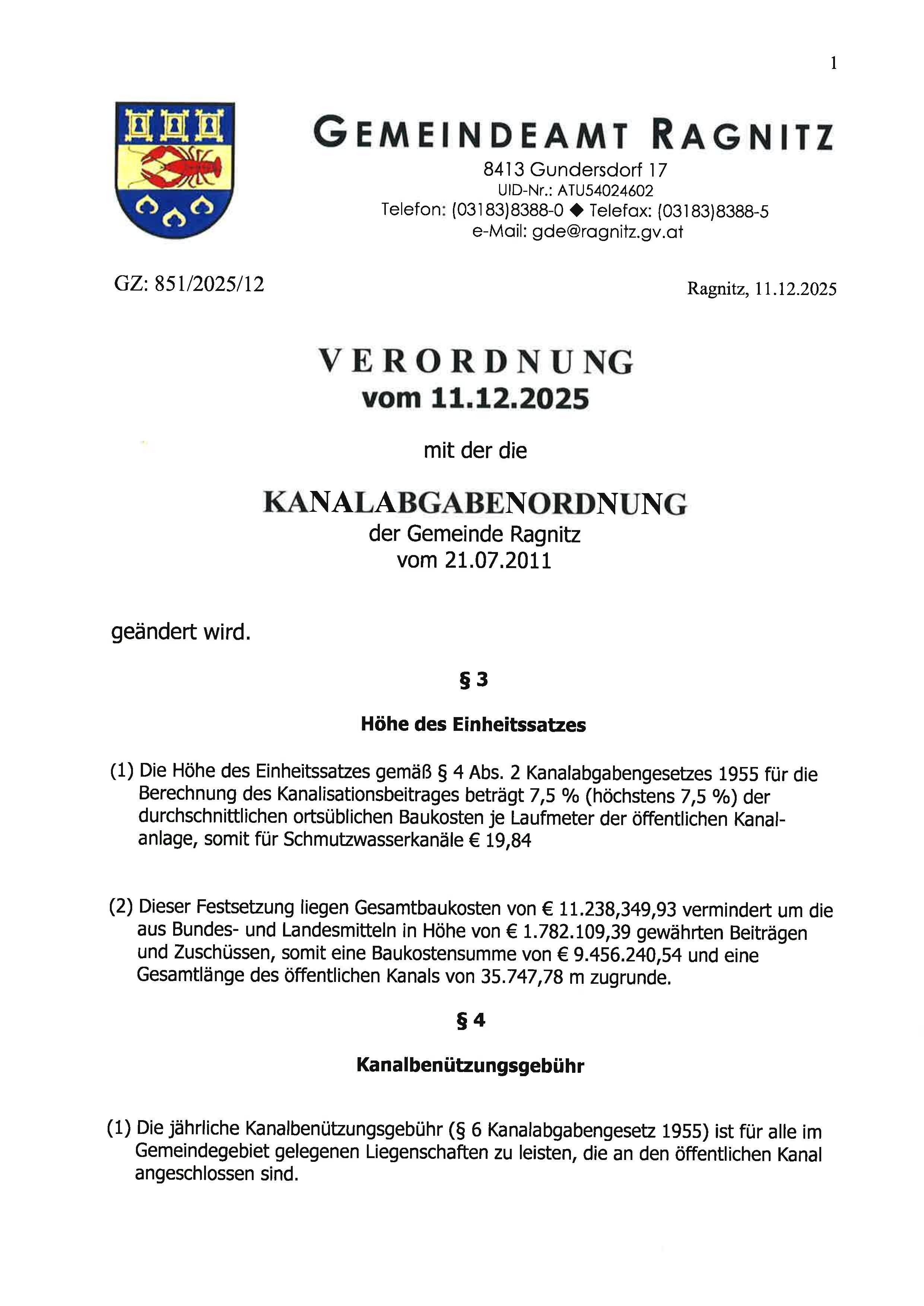 KM Verordnung Kanalabgaben 2026
