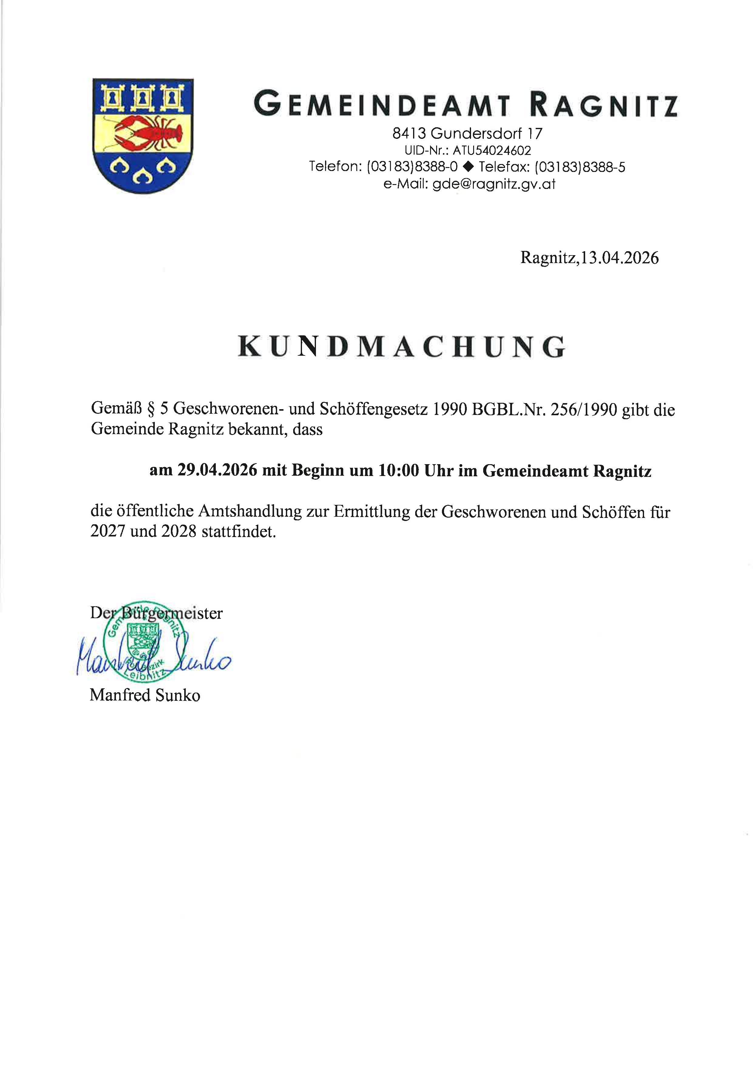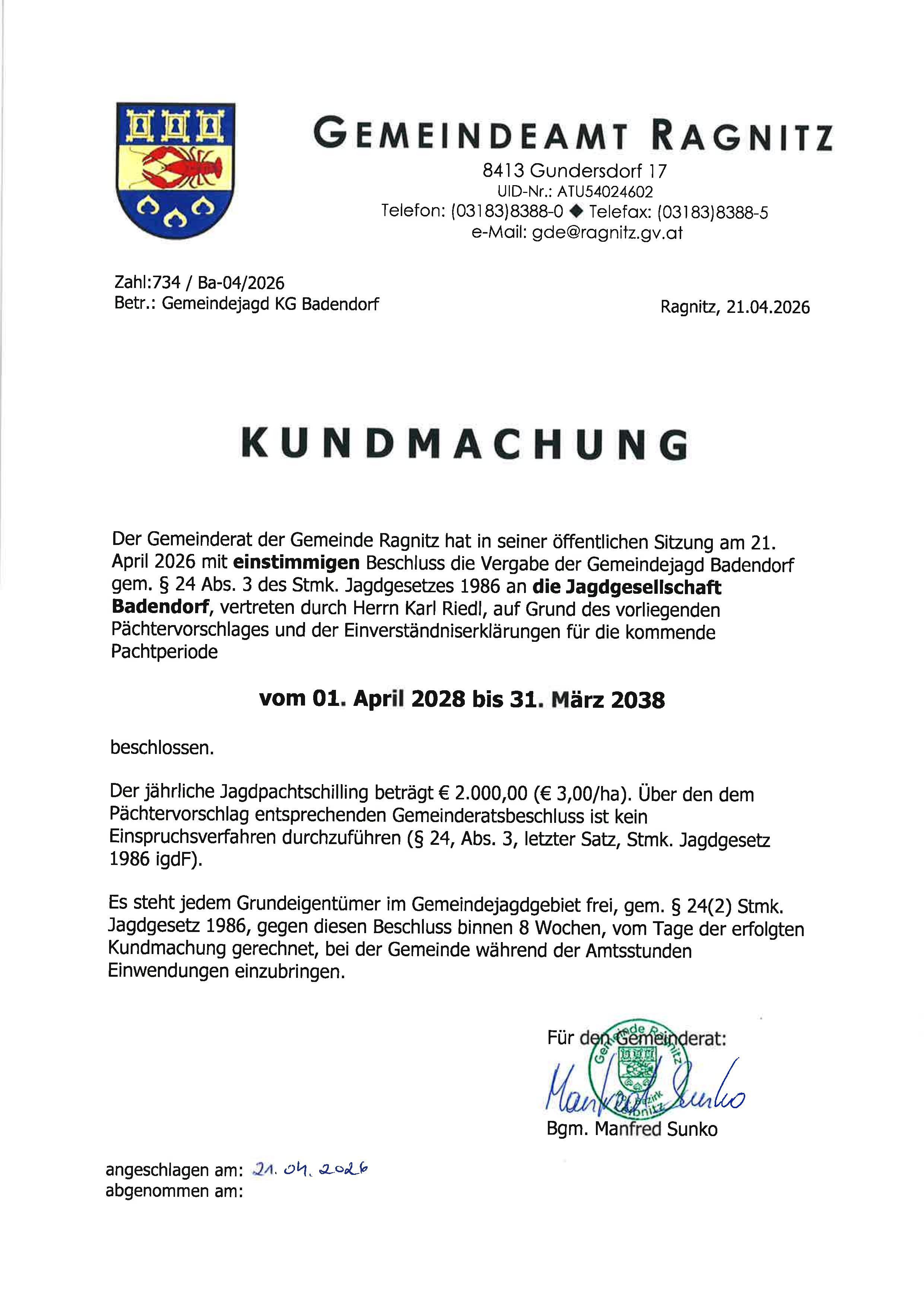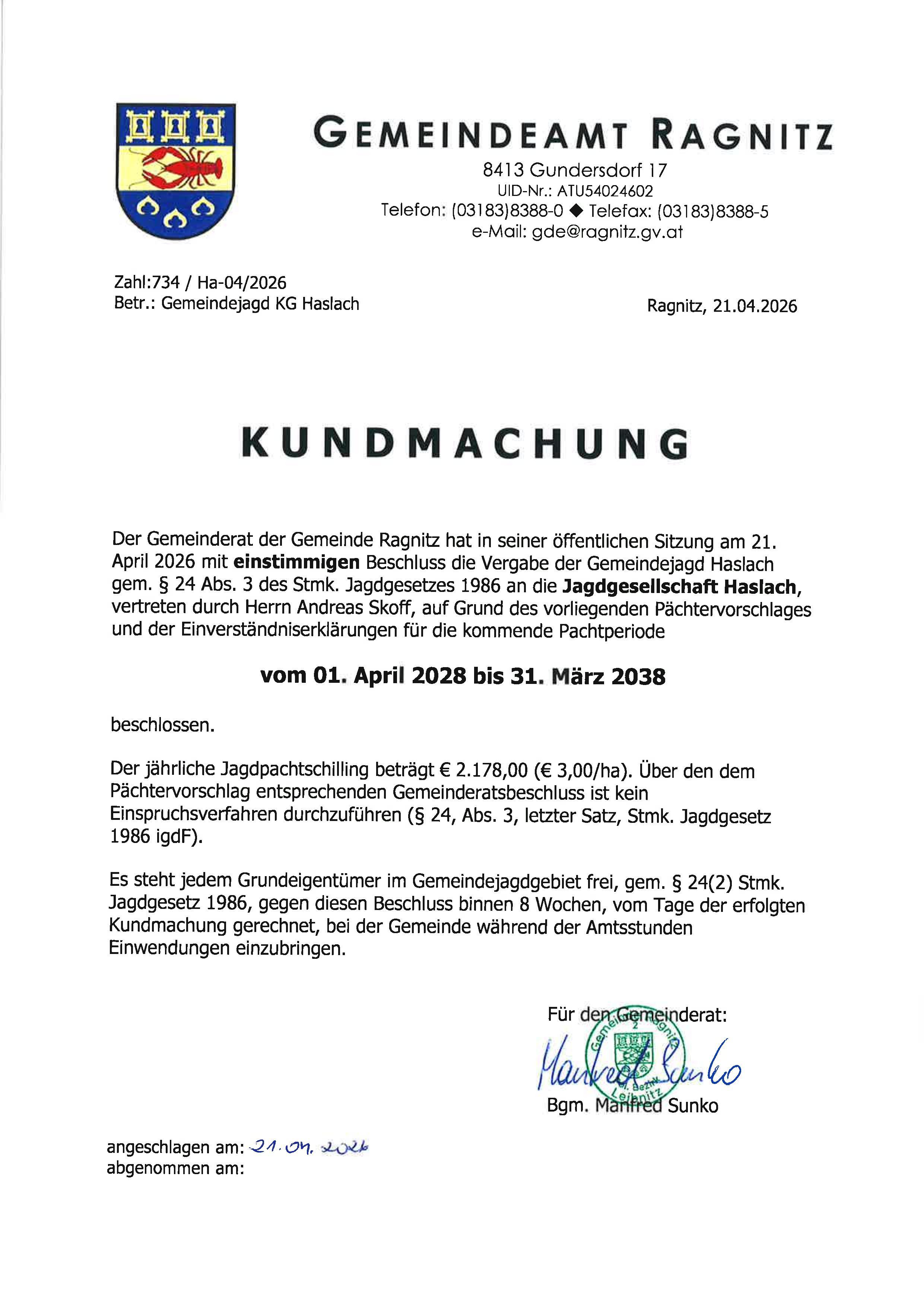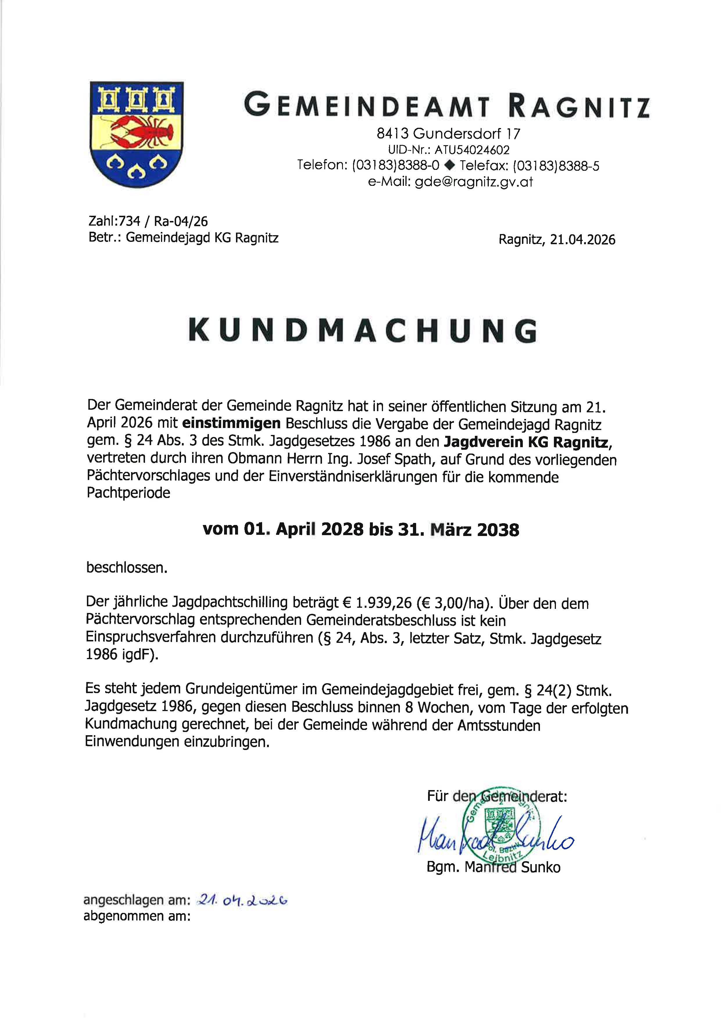 KM Vergabe Gemeindejagd Ragnitz